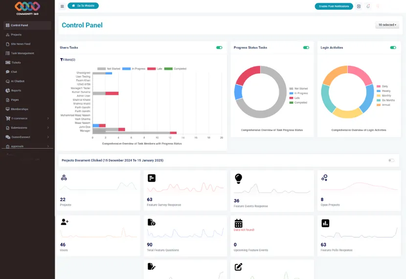 Community 360 is a highly customisable platform with modules for Collaboration, Communication, Monetisation, Tracking and reporting of a private Community. Think of it like your own private social media network where you own, control and have complete access to the data.